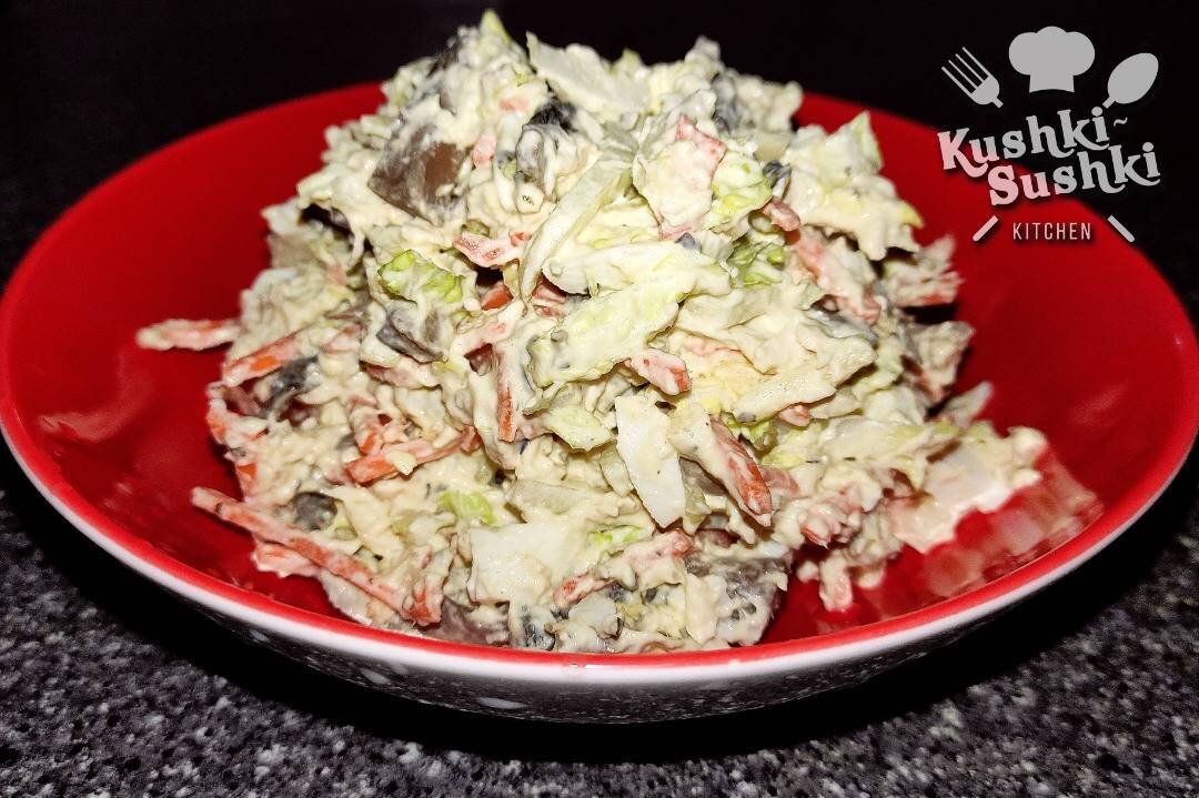 Доброго времени суток, Друзья! Праздники продолжаются, а мы продолжаем знакомить вас с новыми, интересными и незаезженными салатами, которые хороши как на праздничном столе, так и на повседневном. Вот ещё один салатик, достойный вашего внимания. #новыйгод Ингредиенты: куриное отварное филе, яйца, больших шампиньонов, пекинской капусты, сырая морковь, яблоко, растительное масло для обжарки, сметаны, майонеза, сока лимона, петрушка, соль Способ приготовления: Пекинскую капусту тонко нашинковать. Грибы порезать толстой соломкой (при обработке шампиньоны очень сильно уменьшаются в размере) и обжарить на растительном масле. Морковь и яблоко очистить и порезать соломкой. Яйца сварить и порезать соломкой. Курицу порвать руками на волокна. Все ингредиенты выложить в ёмкость. Приготовить заправку. Смешать лимонный сок, сметану, майонез и нарубленную петрушку. Выложить в салат. Перемешать и посолить по вкусу.