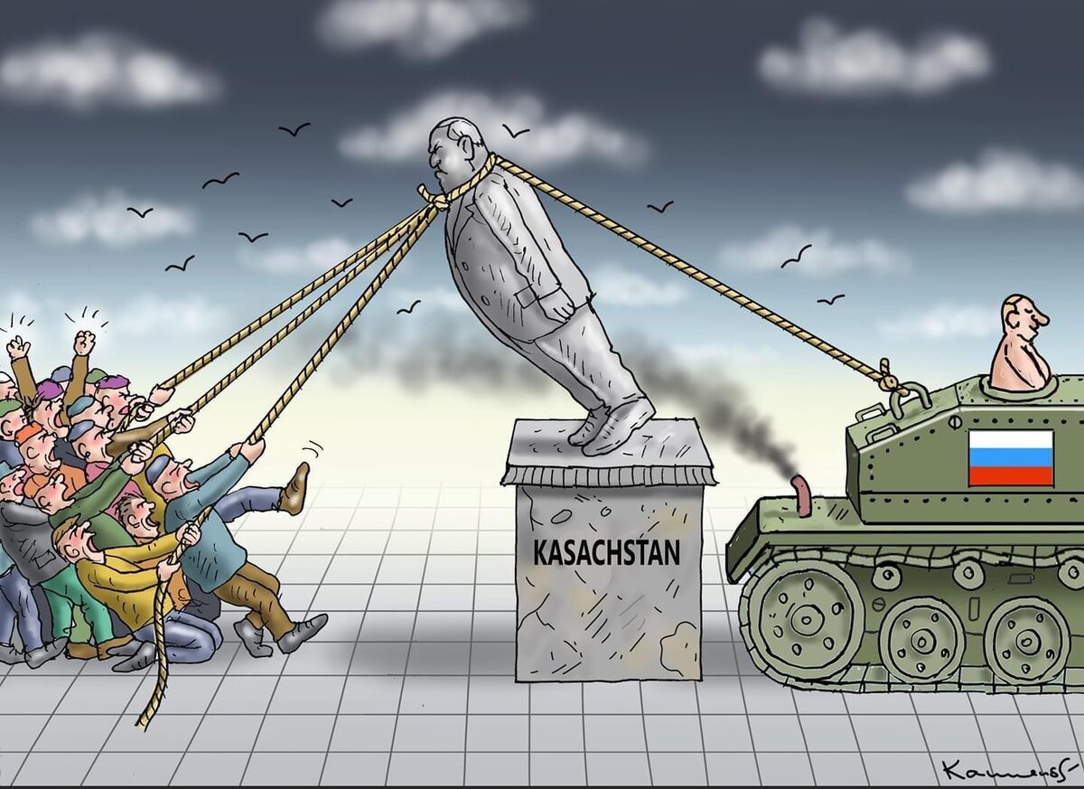 Австрийский карикатурист Мариан Каменский представил свою новую работу, где высмеял протесты в Казахстане и возможную роль Путина в их прекращении. В западном сегменте интернета карикатура набрала огромное число откликов и комментариев. Давайте почитаем самые интересные из них. Румынский пользователь спрашивает: "Главный вопрос: почему Путин без рубашки?" Ему отвечают: Вспомни фото, где Путин едет на лошади в таком виде. Вот откуда корни. А вот что пишет француз: В принципе все логично! Россия не может потерять Байконур и ей важны поставки урана. Поэтому неудивительно, что Путин не собирается бездействовать и отдавать Казахстан под сферу влияния США или Китая. Далее итальянец: Не будьте так наивны! За протестами стоит сам Токаев, и для граждан Казахстана ничего не изменится. Следующий комментарий из Латвии: Путин не в состоянии содержать свои марионеточные государства? Видимо все деньги ушли на Крым. Далее соседняя Эстония: Карикатура отстой. Упрощает всё и пропагандирует неверное