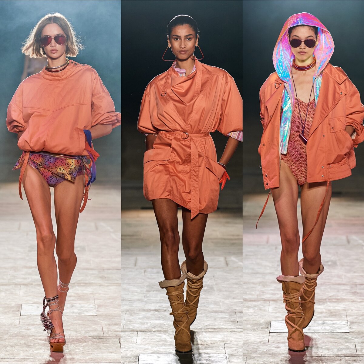 Isabel Marant SS’22 RTW уводит нас к пляжам, к лету, к беззаботным веселым денькам, когда можно делать все, что хочется, совершенно не следя за временем. «Это - лето. — сказала Маран о своей коллекции. - Я действительно хотела показать здоровых, спортивных и красивых женщин с открытыми ногами, как всегда». Но помимо того что этот факт является своеобразной отличительной чертой дизайнера, обнаженное тело в коллекциях Isabel Marant смотрится красиво и чувственно, без намёка на вульгарность. Силуэт восьмидесятых, как обычно, прослеживается в коллекции, но совершенно ненавязчиво. Большее внимание здесь уделяется спорту, но без потери женственности, что важно. Яркие цвета омбре привлекают огромное внимание своей неземной красотой, ассоциируясь с закатом «в Маями» - обязательно бы добавила Изабель Маран. Отделка денима восхищает своей роскошью, а ткань металлик заставляет поностальгировать. И несмотря на то что образы в этой коллекции созданы для того, чтобы проводить досуг, занимаясь