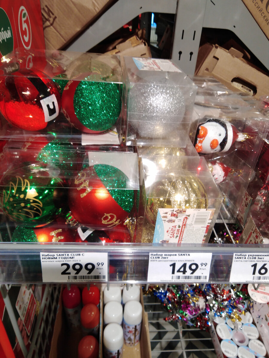 Большой выбор новогодних украшений представлен в магазине "Пятерочка". Теперь не обязательно ехать в специализированные магазины для покупки этих украшений. Или спешить на Новогодние ярмарки. Очень много красивых украшений для ёлки есть Есть балончики с искусственным снегом Есть шары, гирлянды Все очень красивое Сумки, маскарадные очки, маскарадные ободки, игрушки "ТИГРЕНОК" прекрасная мишура. Дя себя приобрела Золотистую мишуру, маскарадные очки и шар на ёлку. С Новым годом!!!!!