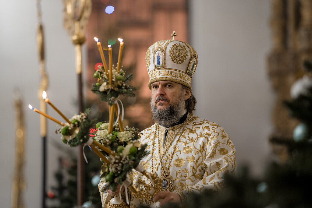 Заканчивая рождественское богослужение, митрополит Амвросий поздравил всех собравшихся на торжественную службу со светлым праздником Рождества Христова: