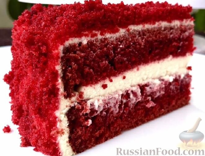 Продукты Для бисквита: Мука - 340 г Сахар - 300 г Какао - 1 ст. ложка Соль - 1/4 ч. ложки Разрыхлитель - 2 ч. ложки Сода - 1 ч. ложка Яйца - 3 шт. Кефир 3,2% - 200 мл Сливки 33% - 80 г Масло подсолнечное - 300 г Краситель пищевой красный (гелевый) - 2 ч. ложки Для крема: Масло сливочное 82,5% - 100 г Пудра сахарная - 100 г Сыр сливочный (Филадельфия) - 350 г видео рецепт с фото пошаговый Торт "Красный бархат" Ольга Матвей 04.01.17 Торт по этому рецепту получается не только красивым, но и очень вкусным. Бисквит сочный, легкий и ароматный, а сам торт "Красный бархат" выглядит великолепно. ПродуктыДля бисквита:Мука - 340 гСахар - 300 гКакао - 1 ст. ложкаСоль - 1/4 ч. ложкиРазрыхлитель - 2 ч. ложкиСода - 1 ч. ложкаЯйца - 3 шт.Кефир 3,2% - 200 млСливки 33% - 80 гМасло подсолнечное - 300 гКраситель пищевой красный (гелевый) - 2 ч. ложкиДля крема:Масло сливочное 82,5% - 100 гПудра сахарная - 100 гСыр сливочный (Филадельфия) - 350 г Если вы не хотите использовать краситель в рецепте торта, д