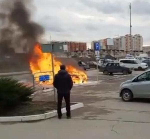 По словам очевидцев, машина сгорела еще до приезда пожарных. Посетители успели отогнать припаркованные рядом автомобили.