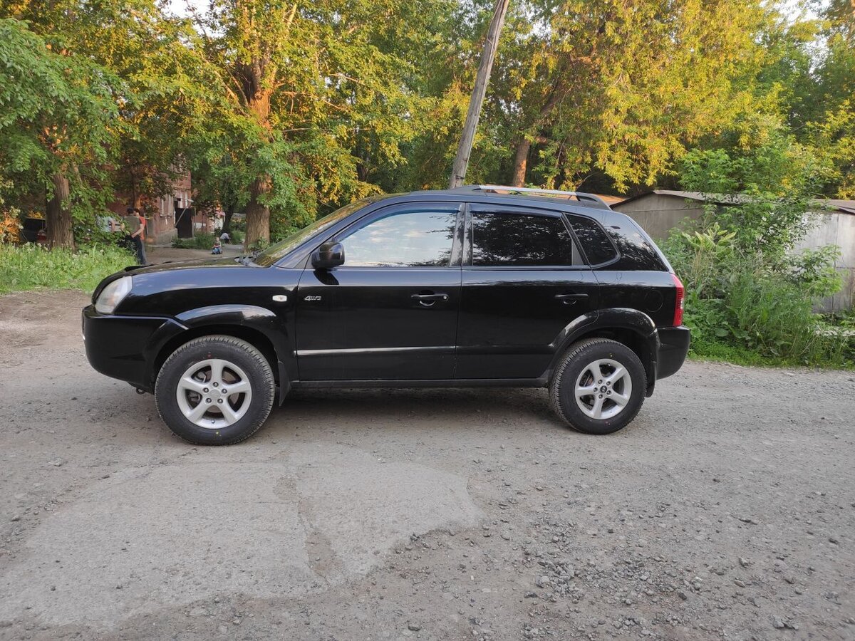 Не так давно у нас с женой возникла необходимость сменить автомобиль, чтобы направить вырученные от продажи Мазда СХ-5 деньги на строительство дома. Вопрос покупки другого автомобиля со вторичного рынка в пределах 500 тыс.руб. у нас даже и не вызвал затруднений с выбором - только Hyundai Tucson! Купили Туссан 2005 года выпуска с пробегом 218 тыс.км. Комплектация предмаксимальная - не хватает только кожи и круиз-контроля. Чёрный "Тушканчик" имеет под капотом бензиновый двигатель 2,7 литра в 175 л.с. и автоматическую коробку передач с полным приводом. Ну полная копия того первого нашего Туссана, только тот был серого цвета с неокрашенными бамперами и накладками дверей (как потом выяснилось - и их покрывают какой-то особенной краской) и в полной комплектации с кожей. Нам и такой пойдёт, лишь бы человек хороший был! Имеется в виду - предыдущий хозяин. А хозяев у него до нас было два. И оба весьма заботливые. Первый сделал шумку в дверях, поставил два усилителя и сабвуфер, проложил акустические кабели, поставил фаркоп и поперечины на рейлинги. До меня дошло всё, кроме сабвуфера - оставил его себе первый водитель Туссана. Второй владелец был внимательным и заботливым по отношению к машине - вёл сам сервисную книжку и записывал туда всю информацию по ремонту и обслуживанию с указанием пробега на котором эти работы производились. На ухоженном авто всё было в рабочем состоянии, хотя ряд работ по замену и обслуживанию конечно перешли ко мне по наследству. Я сделал ревизию ходовой с заменой изношенных узлов. Заменил уставшие амортизаторы с пружинами. Сделал замену всех тормозных колодок и задних дисков по причине критического износа. Поменял ремень навесного оборудования. Ну и колёса мен достались поизношенные - что летние, что зимние. Я поставил проверенные лично мной шины от Yokohama - Geolander A/T G015, которые совершенно законно можно эксплуатировать весь год, как всесезонные. Но зимой конечно они условно зимние. Правда я минувшую зиму на них проездил беспроблемно. Из-за экономии. Но лучше бы шипованные поставил. Плановые работы включили: замену масла АКПП, трансмиссионного масла в редукторе и раздатке, регулярные ТО через каждые 10 тыс.км.