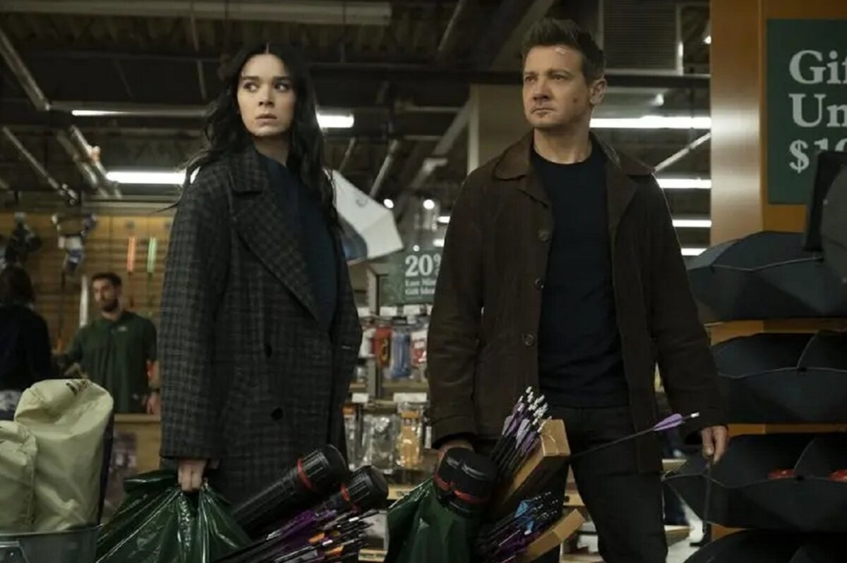 А теперь в сети появился кадр ещё одной удалённой сцены, показывающий Клинта Бартона и Кейт Бишоп с покупками из магазина.