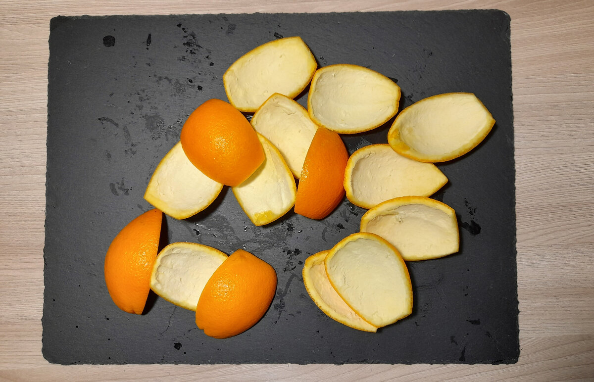 Если вы любите делать свежевыжатый апельсиновый сок или например фруктовые салаты, то прекрасно помните, что всегда остается кожура от апельсинов- те самые очистки. В 98% процентах случаев они уходят напрямую в мусорное ведро. Но, если, потратить немного времени и сахарного песка, то можно приготовить вкуснейший десерт, который все реже делается в домашних условиях. Итак, нам понадобится: Кожура от 5 шт. спелых апельсинов средних размеров 2 стакана сахара 1 чайная ложка соли 1 чайная ложка сливочного масла Для удобства, апельсины режем на 4 части и снимаем с них кожуру. Если же кожура уже имеется, то просто режем на узкие полоски средней длины. Кладем это все в кастрюлю и заливаем холодной. Необходимо варить на среднем огне около 15. Это необходимо для того чтобы их кожуры апельсина ушла вся горечь. Спустя 15 минут- сливаем остатки воды, доливаем снова холодной и варим еще раз, также 15 минут. Повторяем все это 3 раза. С одним лишь отличием. На 3 за добавляем 1 чайную ложку со