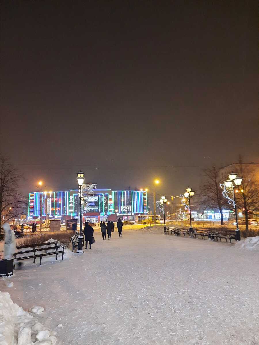 А вы знаете, где это всё можно увидеть в Петербурге? Я увидела, поехав в гости. Редко бываю в том районе города. Плохо знаю как и что там. Вышла на станции метро Ленинский проспект. И сразу оказалось на Бульваре Французском. Красивое место. Думаю летом там очень хорошо. Сейчас деревья голые. Да и на скамеечке вряд ли захочется посидеть. Зато можно посмотреть на картинки Парижа , светящиеся на здании торгового центра с одноимённым с бульваром названием. Я знала как мне идти (лет семь назад ходила этим путем). В основном по пустынным скверам и улицам. Ничего интересного, кроме этой живой ёлки не увидела. Она там растёт. И её украсили немного. Правда ещё яркая фруктовая палатка привлекла внимание. На фоне заснеженных улиц смотрится как оазис! Но цены в этой палатке мне не очень понравились. Сразу вспомнился рынок в Турции. Удивительно, но покупатели у палатки были. А я дальше пошла. И Счастливую улицу нашла. Правда сейчас она выглядит не очень радостно. Темновато. Ни одного "с