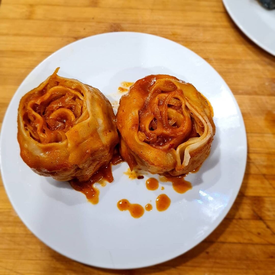 Готовое тесто, закрываем пленкой и даем отдохнуть 10 - 15 минут. За это время приготовим начинку.