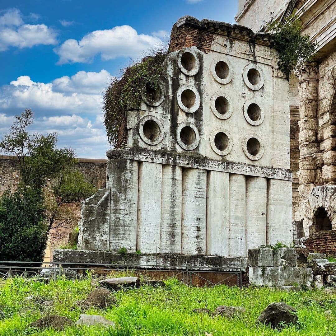 Тысячи людей сегодня проходят мимо этого древнего монумента и даже не обращают на него внимание. Более того некоторые архитекторы строят дома по его образцу не всегда зная, откуда эти формы. А когда-то эта находка наделала немало шуму… Началась вся история в 1 веке до н.э., когда вдоль одной Римской дороги строились вовсю мавзолеи и простой зажиточный гражданин смог воздвигнуть свой семейный мавзолей неподалёку от древнего города, несмотря на то, что он когда-то был рабом?? ну или сыном раба… Рим тогда был меньше и крепостные стены проходили в нескольких сотнях метров ближе к центру. Видимо этот гражданин крайне гордился своим занятием, раз мавзолей задумал с барельефами, изображающими сцены из пекарни и с элементами, напоминающими пекарню. Именно в таких нишах замешивали тесто для хлеба! Неудивительно, ведь в Риме любое предпринимательство уже считались уважаемым занятием. Здесь же должна была покоиться вся его семья и мавзолей был своеобразным памятником всему роду. А для жены он