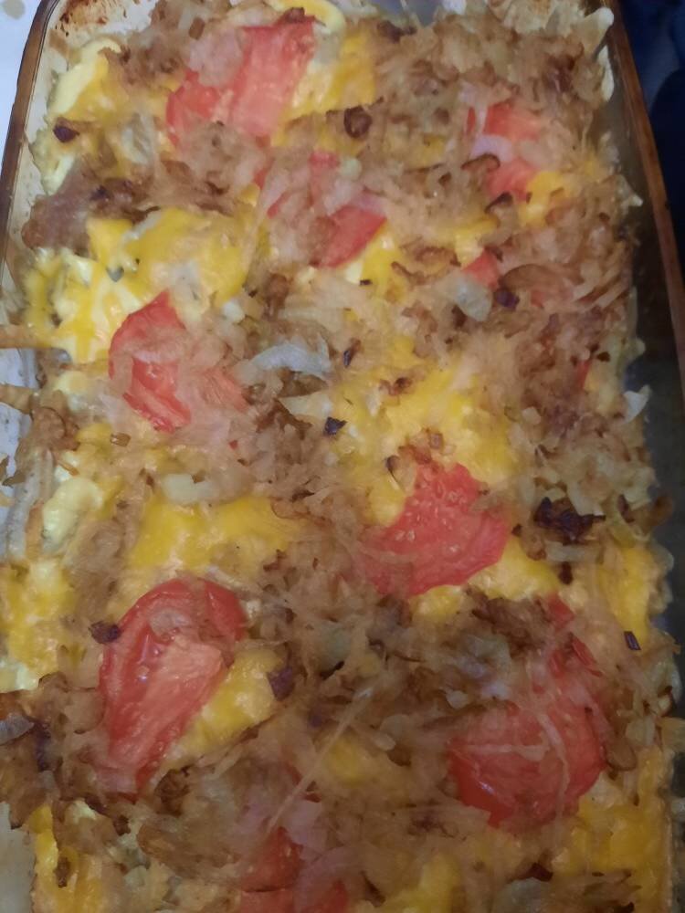 Ингредиенты: картофеля, минтая, сыра, Соль , помидор, Майонез, Специи для рыбы, репчатого лука