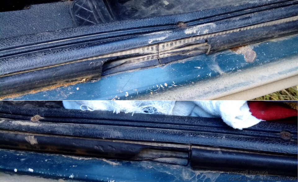 Всем привет, дорогие подписчики! Решил помимо подробных инструкций по ремонту своего автомобиля ВАЗ-2107i 2006 года выпуска начать выкладывать его старые бортовые записи по ремонту, обслуживанию, тюнингу и прочие заметки. Пойдут в хронологическом порядке начиная с самой первой 4 года назад, будут перемежатся с обычными инструкциями по ремонту. Возможно, кому-то будут полезны. -------------------------------------------------------------------------------------------------- 19 ноября 2018 Всем привет! Продолжаем готовить машину к зиме, в этот раз решил заменить уплотнители передних дверей, а также багажника, так как старые уже довольно-таки подсели, на пороге в месте стыка начали рваться, местами отходить от кромки проема, видимо усохлись. В итоге поддувало в передней части на ноги и видно было, что засасывает пыль в салон. На задних дверях резина была еще в норме, поэтому решил там пока не трогать.