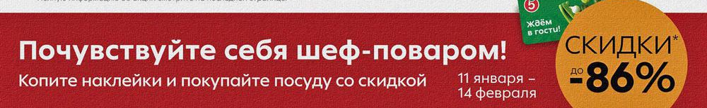 Начинается новая акция на покупку посуды со скидкой. Знаю, что многие пользуются, у нас как-то ни разу наклейки не набирались. В Магните еще раз что-то покупали со скидкой, а в Пятерке - увы.