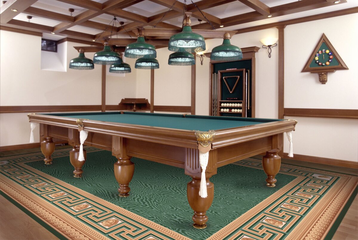 Сыграть пару партий в бильярд можно и на персональном компьютере, сразившись с программой или он-лайн партнером, но ощущение тяжести кия в руке, едва уловимый запах сукна и мела не сравнится ни с чем. Поэтому сегодня мы поговорим об обустройстве собственной бильярдной комнаты, о разновидностях мебели для нее. Прежде, чем отправляться на поиск стола для бильярда, необходимо знать точные размеры и пропорции комнаты, в которой он будет установлен. Согласно стандартам, расстояние от стены до края стола должно составлять не менее 1, 5 метра (а лучше 2) для того, чтобы игрок с кием в руках мог спокойно передвигаться, не цепляясь ни за что, и выполнять удары «от борта». Производители и продавцы бильярдной мебели используют различные формулы расчета размеров помещения. Для того, чтобы разместить маленький любительский стол, вам необходимо иметь комнату примерно 4, 5 на 5, 7 метра. Профессиональный стол большого размера требует простор – от 30 кв. м. Высота потолка будущей бильярдной комнаты