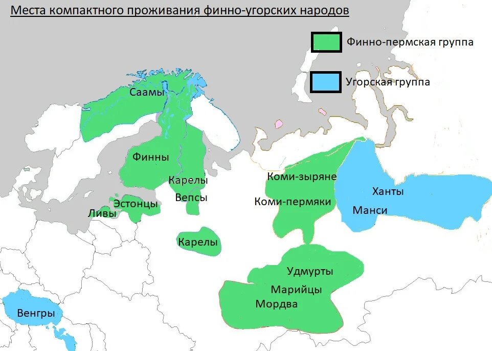 Финно-угорская языковая группа включает такие народы России, как карелы, вепсы, удмурты, марийцы, мордва, коми, ханты, манси, саамы. Из зарубежных народов к ней относятся финны, эстонцы и венгры.