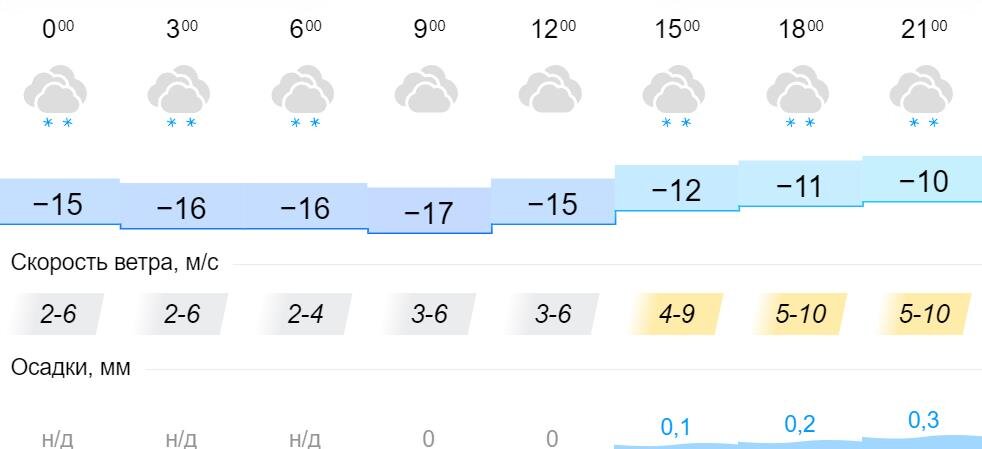 Днем температура воздуха составит -12…-15°С. Утром – до -17°С, вечером – до -10°С.
