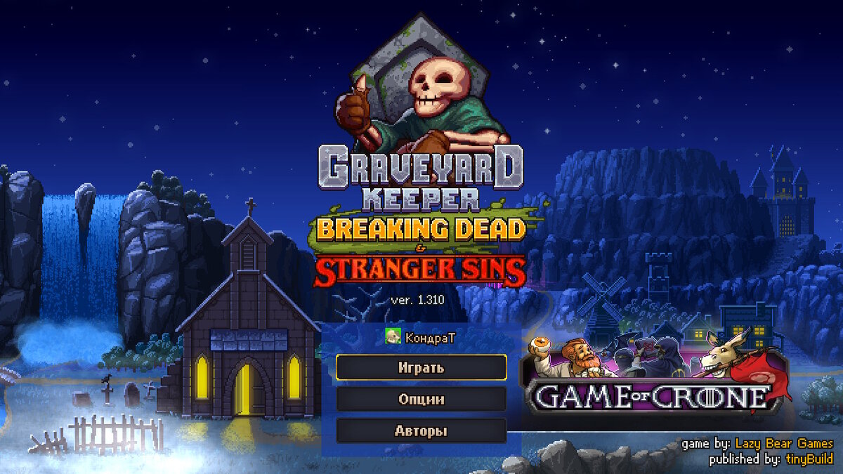 Здравствуйте, а вы когда нибудь были хранителем кладбища? В этом вам поможет игра о которой я вам расскажу далее. GK это роллевая игра в жанре симулятора, которую создала студия российских разработчиков вышла она на все платформы. Сразу хочу отметить с юмором у авторов всё в порядке шутить они любят и шутят они про всё подряд. К тому времени когда я прошёл начальную версию игры и решил написать статью вышло 3 отдельных дополнения к игре, которые имеют отсылки к популярным сериалам прошлого года и не только. Это Брекин зе бед, Очень странные дела и Игры престолов. Игра слов Сломанный мертвец, Чужие грехи и Игры Старух. Итак о самой игре, она начинается с пролога в котором мы узнаём о том, что главного героя сбивает машина и он оказывается в другом мире похожим на средневековье где мы являемся хранителем старого, запущенного кладбища и чтобы вернуться домой к семье мы должны разобраться со всеми местными проблемами. Помогать нам в этом будет говорящий череп, который до своей кончины явн