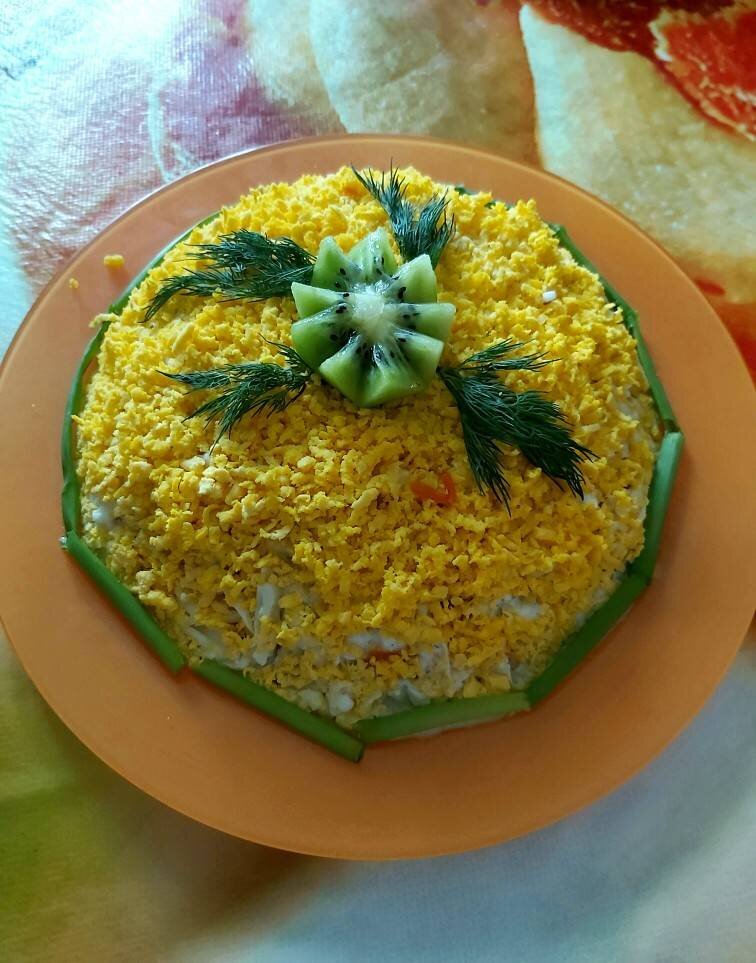 #новыйгод #рождество Всем доброго времени суток!🤗 Вашему вниманию - рецепт классической "Мимозы". Украсить можно по своему желанию. Ингредиенты: рыбных консервов, средняя луковица, яйца, небольших моркови, плавленых сырка, Майонез Способ приготовления: Рыбу выложить вилкой в глубокую тарелку, добавить немного жидкости, размять вилкой, выложить на тарелке первым слоем. Вторым слоем выложить мелко порезанный лук. Отделить желтки от белков. Белки потереть на крупной терке - это третий слой. В остатки рыбного рассола в банку добавить майонез, тщательно перемешать вилкой. Полить салат половиной этой смеси, разровнять ложкой. 4 и 5 слой - тертые на крупной терке морковь и плавленые сырки. Полить салат оставшимся маринадом с майонезом, разровнять ложкой. Последний слой - тертые на мелкой терке яичные желтки. Приятного аппетита!🤤 Если есть вопросы по приготовлению - я на связи: пишите мне, всегда рада помочь!😉
