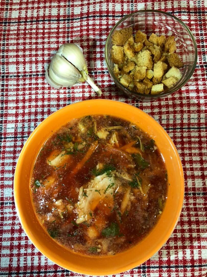 Вдохновила меня @lvtatiana на приготовление вкусного, борща❤️ Ингредиенты: Свиные кости с мясом, Вода, Картофель, Свёкла среднего размера, Морковь, Капуста квашеная с перцем, Лук репчатый, Масло растительное для жарки, Соль и перец , Лавровый лист, Эссенция уксусная 9%, Чеснок, Зелень Способ приготовления: Помыть и подготовить мясо к варке бульона. Варить ~2 часа снимая пену. Картофель почистить, нарезать кубиком, добавить в бульон и варить до полуготовности, добавить капусту с перцем и варить 5 минут. Лук очистить, порезать кубиком. Свёклу почистить, кубиком порезать-1 шт., вторую натереть на тёрке. Мелко нарезать сало, обжарить на сковородке с луком и морковью натертой соломкой. Далее добавить кубиком свёклу, обжарить, добавить мелко натертую свёклу и опять обжарить. Уксусную эссенцию развести в 1/3 кружке воды или бульона, залить и тушить до готовности. Чеснок очистить, натереть на тёрке мелкой, в середину сковороды с зажаркой добавить чеснок, обжарить. Мясо разобрать от косточек, п