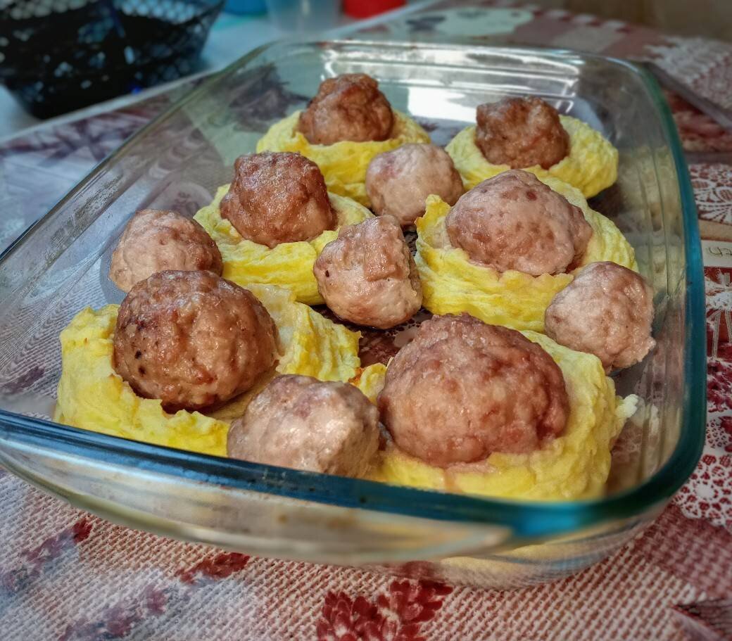 Картошка запечённая в духовке с тефтелями. Картофельные гнёзда🧆