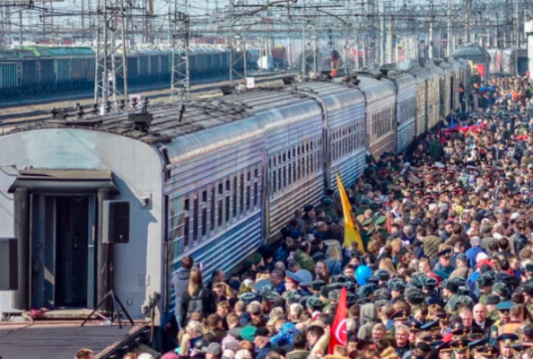 На перроне стало ещё "жарче". Мы ахнули. Это было, как в Индии. Стоял наш дизель, и там было столько людей, что пассажиры с электрички туда не могли войти. Внутри вагонов видны были просветы. Хотя тамбур "набит" до предела. На наших глазах парни лезли в окна.