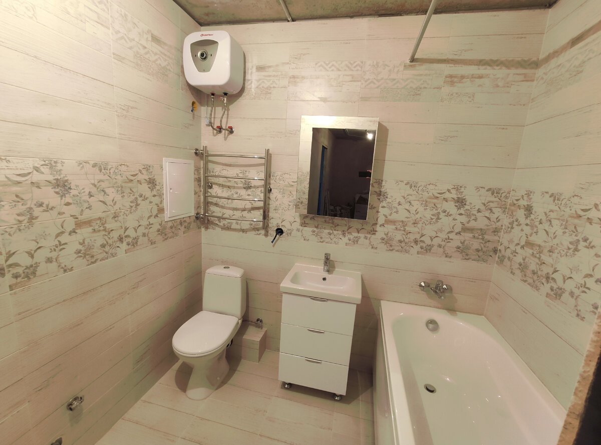 Санузел под ключ 4м2 ЖК ГубернскийПосмотрите в IGTV полныи видеообзор как в самом обычном санузле в 1-кв реализовать все идеи и сделать его функциональным.Итак что же было сделано по работам:.перенос вводных кранов под ванну и разводка сантехники.укладка керамограгита стены и пол затирка.монтаж ванны и инсталляции.монтаж экрана под ваннои из гипсокартона.монтаж перегородки и столешницы.установка смесителеи, накладнои раковины, зеркала..монтаж дверцы под раковинои.поклеи-ка зеркального полотна на лдсп и монтаж этои дверцы над стиральнои машинкои. Проидемся немного по ценам на основные материалы:. Ванна стальная 17070 ножки - 11 000 руб.. Керамогратин серыи Леруа - 770 рубм2.Керамогранит под Дерево БауЦентр - 950 рубм2. Инсталяция с унитазом и кнопкои Roca - 14 000 по Акции. Накладная раковина 5035 4000 руб. Зеркало - 1000 руб авито. Смеситель на раковину 2000 руб Алиэкспресс. Душевая стоика смеситель 4000 руб Алиэкспресс. Дверца над стиральнои машинкои и полочки 3000 руб..Ка