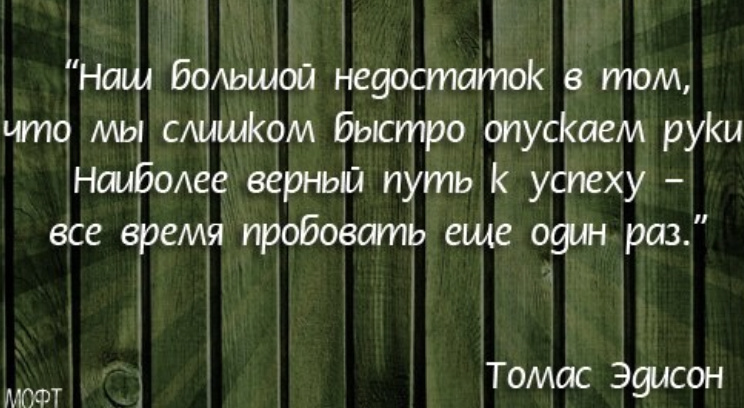 Очень многие люди любят действовать таким образом: с начало они что-то пробуют, потом у них что-то не получается и они просто опускают руки, потому что думают, что все люди достигшие больших вершин сделали это обманным путем. Но помните, что многие великие люди бывали на самом дне и знает, что такое бедность. Но они не остановились когда оказались в яме. Они шли до конца и не боялись нечего. Нет боялись, просто преодолевали свои страхи. И благодаря этому они стали такими какими они сейчас являются.