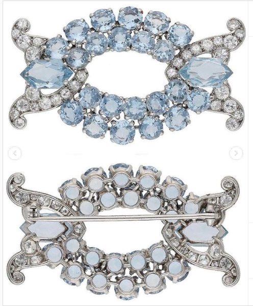 Елизавета Боуз-Лайон, жена Георга VI купила брошь от Картье в январе 1947-го года, заплатив за неё 175 фунтов стерлингов. Это украшение она подарила на 17-летие своей младшей дочери - принцессе Маргарет, перед её первой поездкой за границу - в Южную Африку. Брошь сделана из платины и имеет гравировку в виде буквы "М" - Маргарет. В качестве вставок мастера Картье использовали чудесные аквамарины и бриллианты, так подходящие к голубым глазам прекрасной принцессы. Принцесса предпочитала синий цвет, очень любила это украшение и часто дополняла им свои наряды. Брошь датируется 1932-м годом и сделана в стиле ар-деко. В ноябре 2021-года стало известно, что она будет выставлена на торги в аукционном доме Dix Noonan Webb. Это не первый аукцион для украшения, в 2006-м году она была продана на Christie’s. Продажу личных вещей и украшений принцессы Маргарет организовал её сын Дэвид. Прекрасную брошь приобрёл неизвестный покупатель за 47 600 евро, полностью оправдав пред