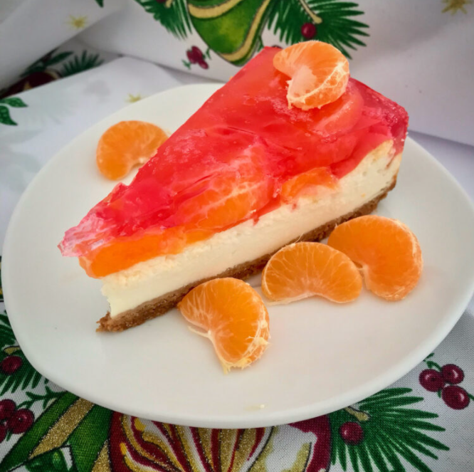 Йогуртовый чизкейк, покрытый желе с мандаринами, является прекрасным примером того, что не обязательно использовать тесто в его приготовлении. Мой чизкейк наполнен настоящим йогуртом, который при выпечке становится воздушным и нежным на вкус. Приятный вкус торта, а также добавление фруктов и желе делают его в целом приятным десертом не только «после обеда». Обязательно попробуйте. Для пирога нам понадобится: Для йогуртовой массы: Смешайте песочное печенье с растопленным сливочным маслом блендером до однородной массы. Выложить массу из печенья в форму (диаметром 20 сантиметров), застеленную бумагой для запекания. Поставить в холодильник минимум на 30 минут. В миску выкладываем йогурт, затем добавляем ваниль и крахмал, все перемешиваем. В чаше кухонного комбайна взбейте белки двух яиц со щепоткой соли. Когда пена будет готова, порциями добавляйте сахарную пудру и, перемешивая, взбивайте смесь до густоты. Пенку с сахаром постепенно добавляем в йогуртовую массу, аккуратно все перемешивая.