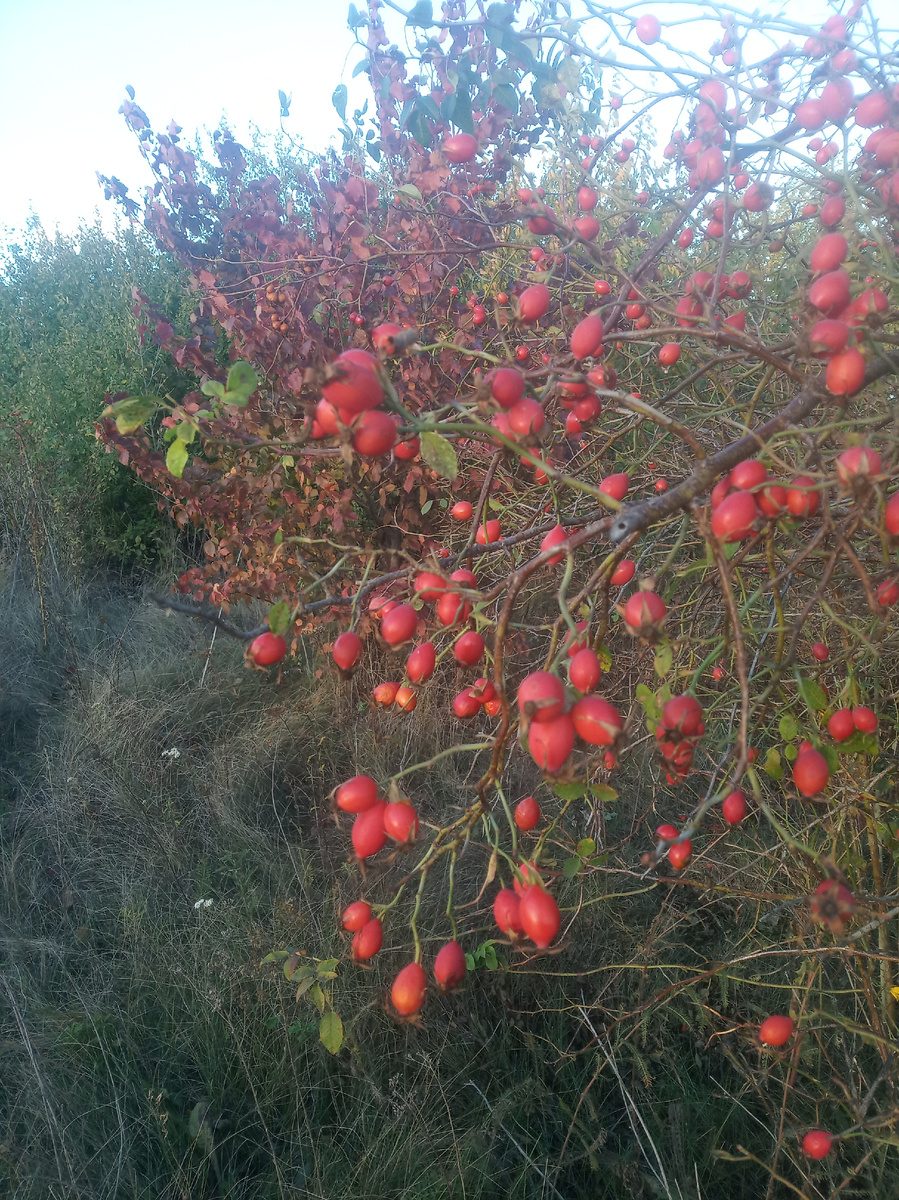 Шиповник собирали уже глубокой осенью, можно было бы, наверное, набрать побольше, но мы были проездом около этого куста, а потом так и не дошли руки. В следующем году наберу хотя бы так, чтобы 700г банка сушеного вышла, больше мне не надо.
