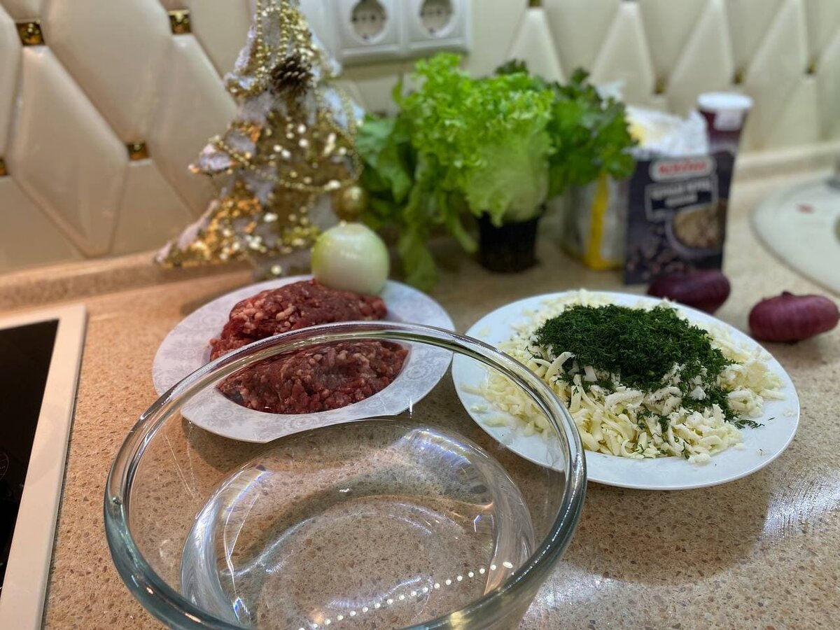 Сегодня я готовил не у себя на кухне, а на выезде в гостях. Было очень много блюд, салатов и закусок. Решил выделить парочку из них и поделиться с вами. Что нам потребуется. Будем делать две начинки. 1. Фарш говядины - 500 г 2. Сыр адыгейский, сулугуни. 3. Укроп 4. Лук 5. Тесто 6. Соль, перец Рецепт с фото: 1. Нам нужно замесить тесто, потребуется вода, соль и мука. Все это вместе взбиваем блендером. 2. Тесто готово и убираем пока его в сторонку. Далее приступаем к начинке. 3. Готовим нашу начинку, наш готовый фарш. Режем лук кубиками. Солим и перчим. 4. Потом готовим вторую начинку. Натираем сыр адыгейский и сулугум. Все у нас начинка готова. Приступаем далее к лепке. 5. Раскатываем тесто и выкладываем фарш. 6. Также раскатываем для второй начинки и выкладываем сыр. 7. Складываем пополам, придавливая вилкой края как на картинке. 8. Сковородкой у меня был казан. Разогреваем масло и выкладываем чебуреки. Жарим до готовности. 9. Наши чебуреки готовы. Выкладываем красиво на тарелку и п