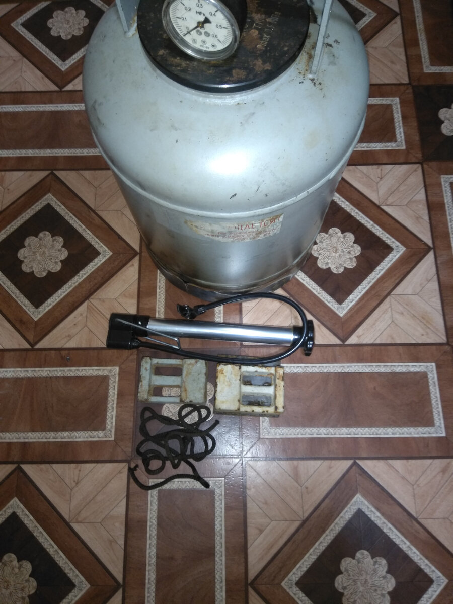 Добрый день! Публикую вторую часть, посвященную необходимому оборудованию и расходникам. Автоклав - это понятно. Насос - для создания избыточного давления в автоклаве. Холщовый мешок или старая наволочка ХБ (на фото нет) - для того, чтобы будущие консервы не соприкасались со стенками, не плавали по всему объему, а ровно лежали, сохраняя форму. Для того, чтобы если одна-другая лопнет - не отмывать весь автоклав от кусков консервируемого продукта. Веревочка - завязывать мешок. Груза - придавить мешок с консервами, чтобы консервы, всплывая, не мешали производить замер уровня воды в автоклаве перед процессом. И не лопались в процессе стерилизации. Ветошь, старые ХБ полотенца и т.п. (на фото нет) - охлаждать автоклав после окончания стерилизации - об этом будет отдельная статья. Шланг (на фото не показан, забыл положить) - чтобы заливать автоклав, когда его уже поставили на плиту, а не рвать спину, поднимая на высоту полный автоклав с водой. Можно, конечно, и ковшиком наливать, но подключ