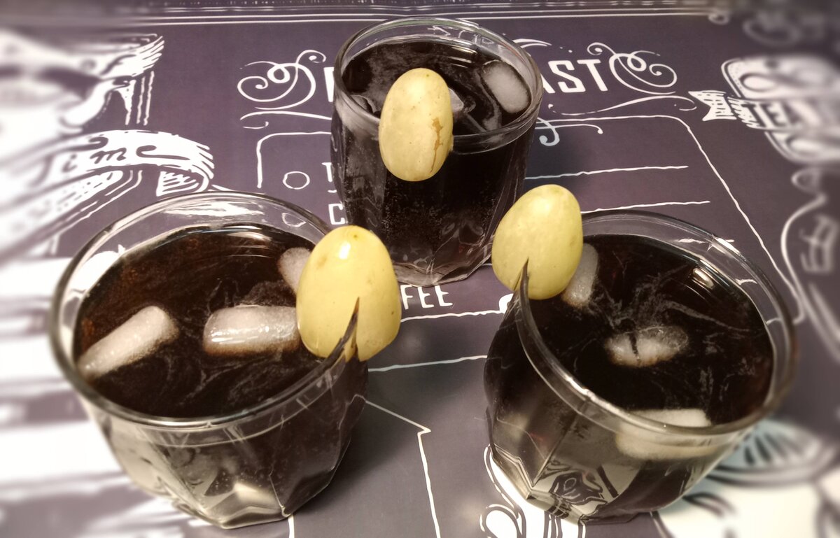 Этот коктейль получился совершенно случайно, хотела порадовать мужа на день рождение, всё, что было в этот момент под рукой, вошло в основу коктейля. #коктейльдлямужа #мужскойхарактервбокале #деньрождениемужа #немногоимпровизации #бокалкоктейля Ингредиенты: коньяка,, черносмородинового ликёра,, колы,, колотый лёд,, ягоды винограда для украшения Способ приготовления: В шейкер добавить колотый лёд, налить коньяк и ликёр, хорошо взбить. Получившуюся смесь выливаем в бокал и добавляем колу, аккуратно перемешиваем и украшаем ягодами винограда.