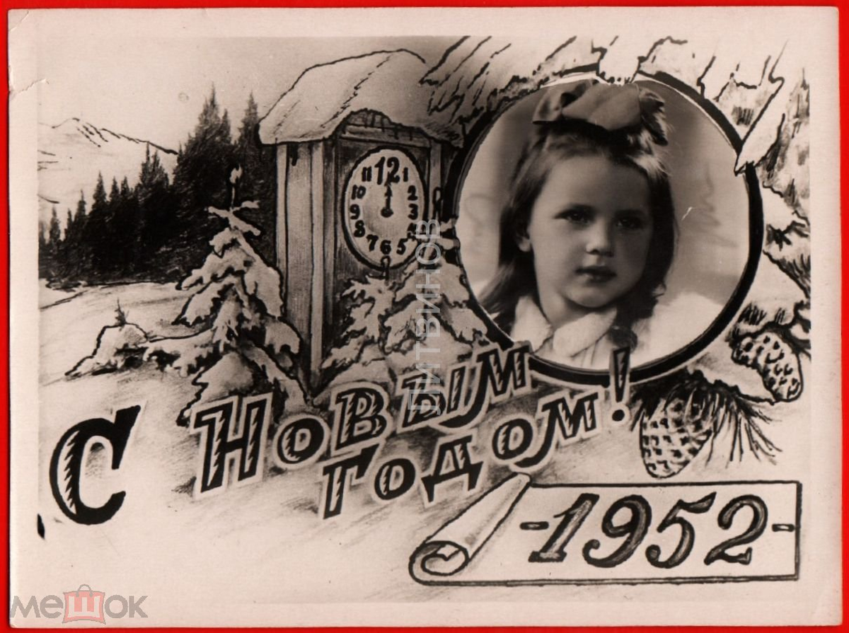 1952 год. Полночь бьет -Новый год! Детей поздравят утром,а вот к взрослым надо спешить ."Но,залётные!" Новогодний привет. 1952 год. Первыми поздравить военных.Наш Дед Мороз и сам воевал. А здесь Дед Мороз спешит поздравить целующихся. 1952 год На лыжах спешит поздравить девушку. 1952 год. Бой курантов во всех уголках страны слышен. 1952 год. Часики,девушки и дамы. 1952 год. 1952 год. 1952 год. Как еще украсить елку? 1952 год. Фото в сердце. 1952 год. Фотооткрытка,в которой уместилась вся история СССР. 1952 год. Заснеженные ели. 1952 год. Весенние обрамление новогодней открытки 1952 год. Дед Мороз провозглашает тост. 1952 год. За тех,кто в море. 1952 год. Поющий моряк тост в ответ: 1952 год. Пусть в этом году