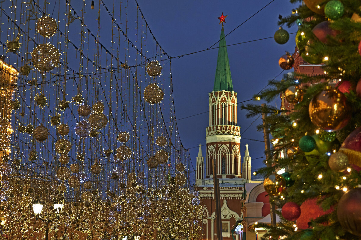 Под конец новогодних праздников мы выбрались в центр посмотреть на наряд столицы. Показываю и вам эту красоту.