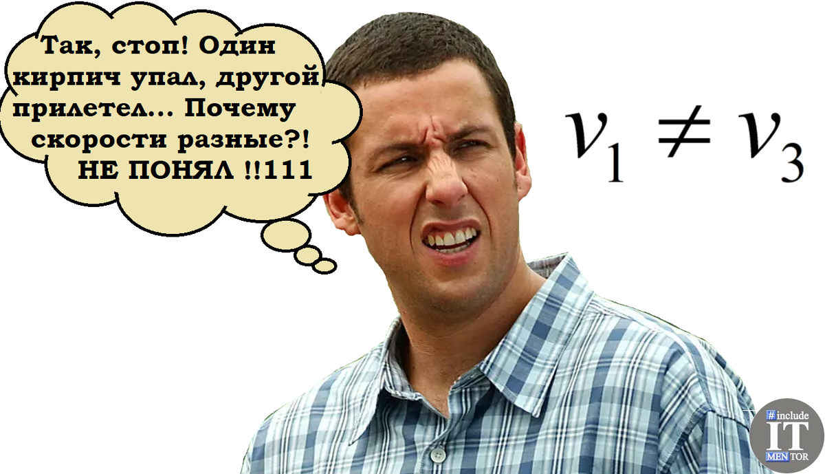 Сегодня проводил занятия по физике у 10 класса, наткнулся на интересную задачку по теме закона сохранения импульса. На мой взгляд, это будет отличный пример задачи, в которой можно легко пойти по ложному пути... Задача Тележка с кирпичами катится по инерции по горизонтальным рельсам, двигаясь со скоростью 2 м/с. Общая масса тележки и кирпичей равна 100 кг. Сопротивление движению тележки пренебрежимо мало. В дне тележки открывается люк, через который вертикально вниз выпадает кирпич массой 10 кг. Через некоторое время на тележку сверху падает кирпич такой же массы. Скорость этого кирпича в момент падения направлена вниз перпендикулярно скорости тележки. Найдите модуль скорости, с которой будет двигаться тележка после прилипания к ней кирпича. Решение: Ложный ход решения: Поверхностное размышление над задачей может быть следующим. Если кирпич упал снизу, то просто отняли массу, значит скорость увеличится. Затем добавили массу, так как кирпич свалился сверху, то есть вернул общую массу к