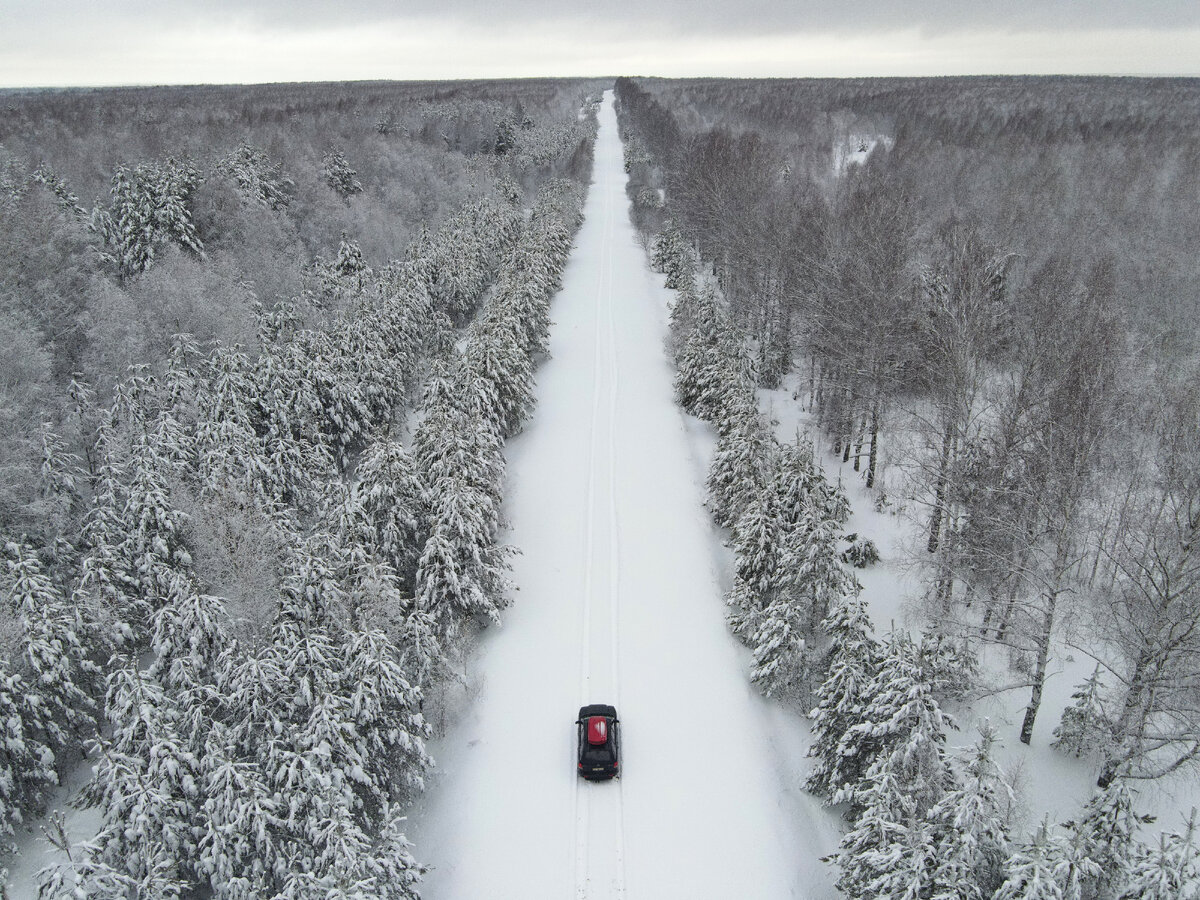 Чуть позже начинают виднеться засыпанные следы от уазов, видимо охотники знают другую, более простую и короткую дорогу. Я пока рад, что изучил эту дорогу и примерно ориентируюсь на местности, немного помогает дрон. Высоко сижу, далеко гляжу!