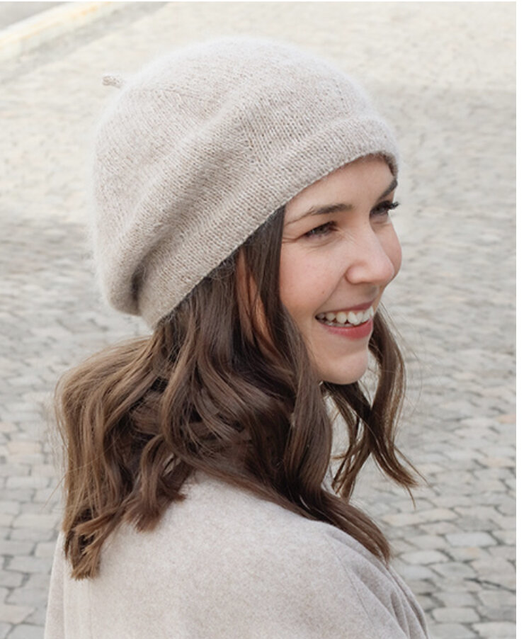 Берет связан из пряжи DROPS Alpaca и DROPS Kid-Silk. Размеры S/M – M/L – L/XL Обхват головы: ок. 54/56 – 56/58 – 58/60 см Понадобится: Пряжа DROPS ALPACA (100% альпака, 167м/50г) 50-100-100 г, цвет 2020, light nougat а также пряжа DROPS KID-SILK (75% мохер, 25% шелк, 210м/25г) 25-25-25 г, цвет 01, off white Дополнительно: ок. 56-60 см эластичной ленты Спицы: Круговые спицы DROPS размер 3 мм, длина лески 40 см для лицевой глади. Круговые спицы DROPS размер 2.5 мм, длина лески 40 см для вязания нижнего края. Чулочные спицы DROPS размер 3 мм Для вязания может быть использована техника MAGIC LOOP, в этом случае используйте круговые спицы с леской 80 см всех указанных размеров. Плотность вязания: 21 петля и 28 рядов лицевой гладью в 2 нити = 10 x 10 см. Примечание! Размер спиц указан в качестве рекомендации. Если в связанном образце на 10 см слишком много петель, возьмите спицы большего размера. Если в образце на 10 см слишком мало петель, возьмите спицы меньшего размера. ВЫПОЛЕНИЕ ПРИБАВОК