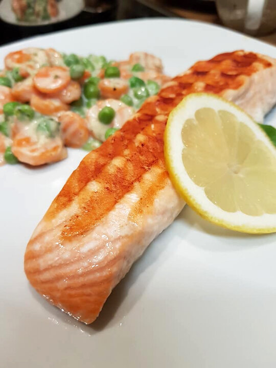 Наш семейный праздничный ужин. Семга на оптигриле. Муж и сын любят сёмгу с голландским соусом. Вуаля! ✓ 4 желтка