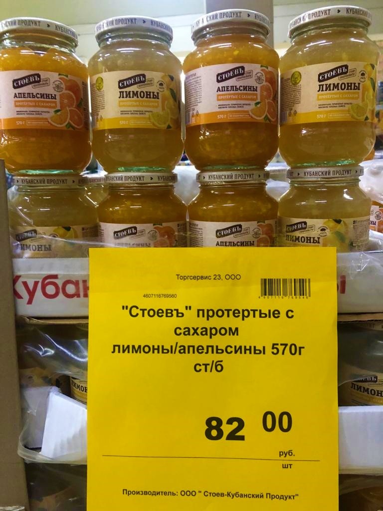 Здравствуйте, дорогие мои читатели! Решила снова зайти в "Светофор" и посмотреть, что же осталось в магазине после праздничных дней. Я думала, всё раскупили за выходные, а нового привоза товаров не было. Не угадала я, уже успели завезти товар. Большое поступление консервированной продукции. Завезли, популярные у покупателей, протёртые с сахаром лимоны. Так же, пользуются большим спросом и протёртые с сахаром апельсины. Хорошо подкрепиться витаминчиками, которых, как всегда, не хватает. Огурцы маринованные снова завезли. Неожиданно быстро раскупили всё из прошлого привоза. — Это подготовка к очередному празднику, ещё Старый Новый год впереди, — поделилась со мной продавец, — ещё будет завоз соков и в холодильную комнату. Шампиньоны консервированные тоже раскупили, и вот новая партия поступила.