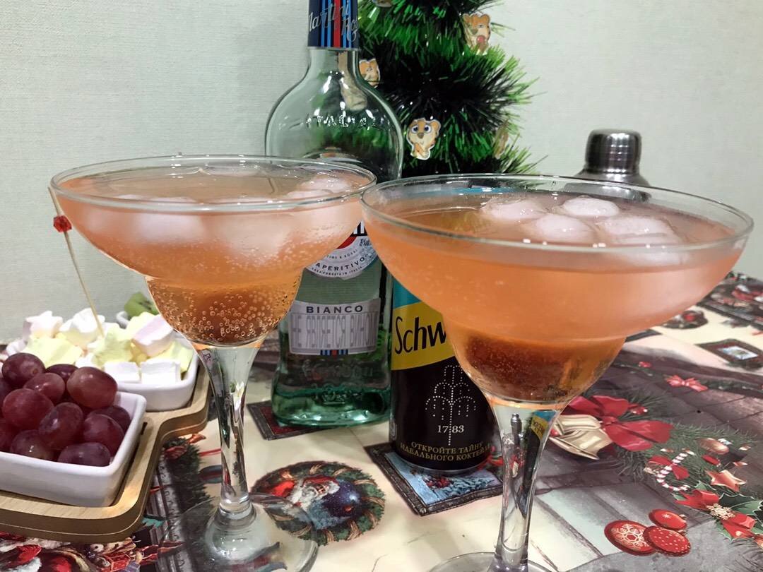 Ингредиенты: мартини, водка, сок, швепс, швепс, клубника Способ приготовления: В шейкере соединяем водку, мартини и сок. Разливаем по бокалам, добавляем швепс, кубики льда и клубнику.