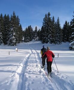 Прогулки на лыжах — отличный способ потренироваться и получить положительные эмоции, поддержать нервную систему и улучшить сон. Мороз и солнце, отражающееся в белоснежных сугробах, — лучшее средство от хандры и депрессивных состояний, связанных с недостатком яркого света. Катание на лыжах способствует укреплению иммунитета и похудению, повышает выносливость сердечно-сосудистой системы, дает посильную нагрузку на многие группы мышц. К тому же, физическая активность на свежем воздухе наиболее полезна. Поэтому катание на лыжах для похудения и здоровья показано людям всех возрастов. При этом интенсивность и продолжительность занятий регулируются в зависимости от подготовки тренирующегося. Катание на лыжах даже на выходных, позволяет задействовать практически все мышцы туловища. Нагрузка приходится как на крупные мышечные группы — ягодичные мышцы, мышцы спины, живота и ног, так и на внутренние мышцы корпуса, отвечающие за осанку и рельеф. Другой плюс — тренировка сердечно-сосудистой системы