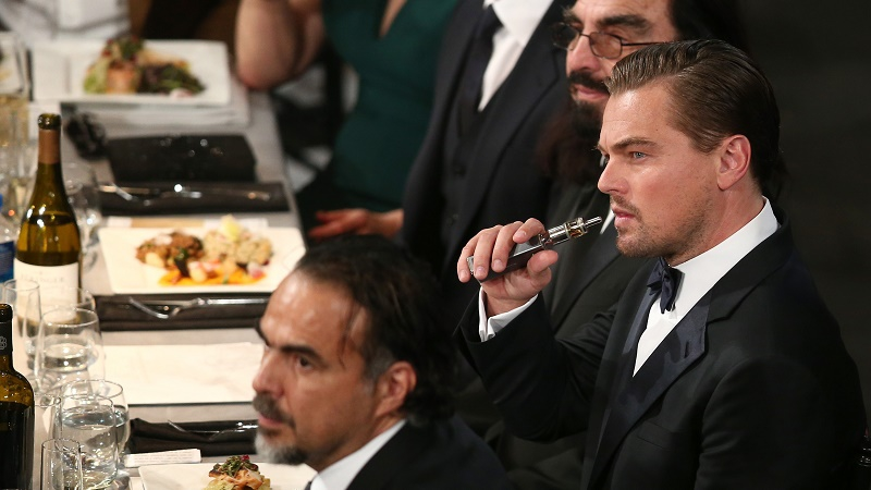 Ди Каприо. По нашим данным, впервые он был замечен с электронной сигаретой на награждении Золотого Глобуса в 2013 году, быть может, он и ра