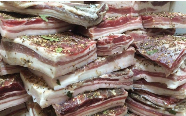 1. Каждый, кто солит сало, наверняка имеет личный рецепт. Рассказываем о том, как засолить сало или грудинку, на основе своего опыта. Собственно, для обычной засолки необходимо только сало, соль, чеснок и немного терпения. Солить можно сало без прожилок и с прожилками – кто что любит. А можно взять кусок свежей свиной грудинки – с хорошими слоями мяса – о-о-чень вкусная штука.