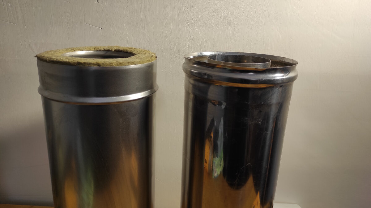 Многих удивляет то, что стоимость дымохода превышает цену за которую была куплена печь. Все потому, что для монтажа одних труб не достаточно, там присутствуют все возможные важные элементы, такие как разделки, огнеупорные материалы, кровельные проходки, герметики, утеплители. Но, даже трубы имеют очень обширную линейку, как по качеству материалов, так и по ценовой политики. В этой статье, я хочу показать Вам, два варианта сэндвич дымохода, которые значительно отличаются по цене и по использованию материалов. Справа на фотографии выше, тот что блестящий, это сэндвич производства компании "Феррум" Марка стали 430, толщина внутренней трубы 0.8мм. Стыковка труб, сварена встык. Внутри базальтовый наполнитель. А это производитель "Вулкан" Сталь марки 321, толщина внутренней трубы, 0.8мм. Соединение встык. Наполнение из базальтовой ваты Rockwool (Дания) По качеству "Вулкан" будет намного лучше, из-за стали и наполнения, температура которую способен выдержать дымоход, составляет до 750 градус