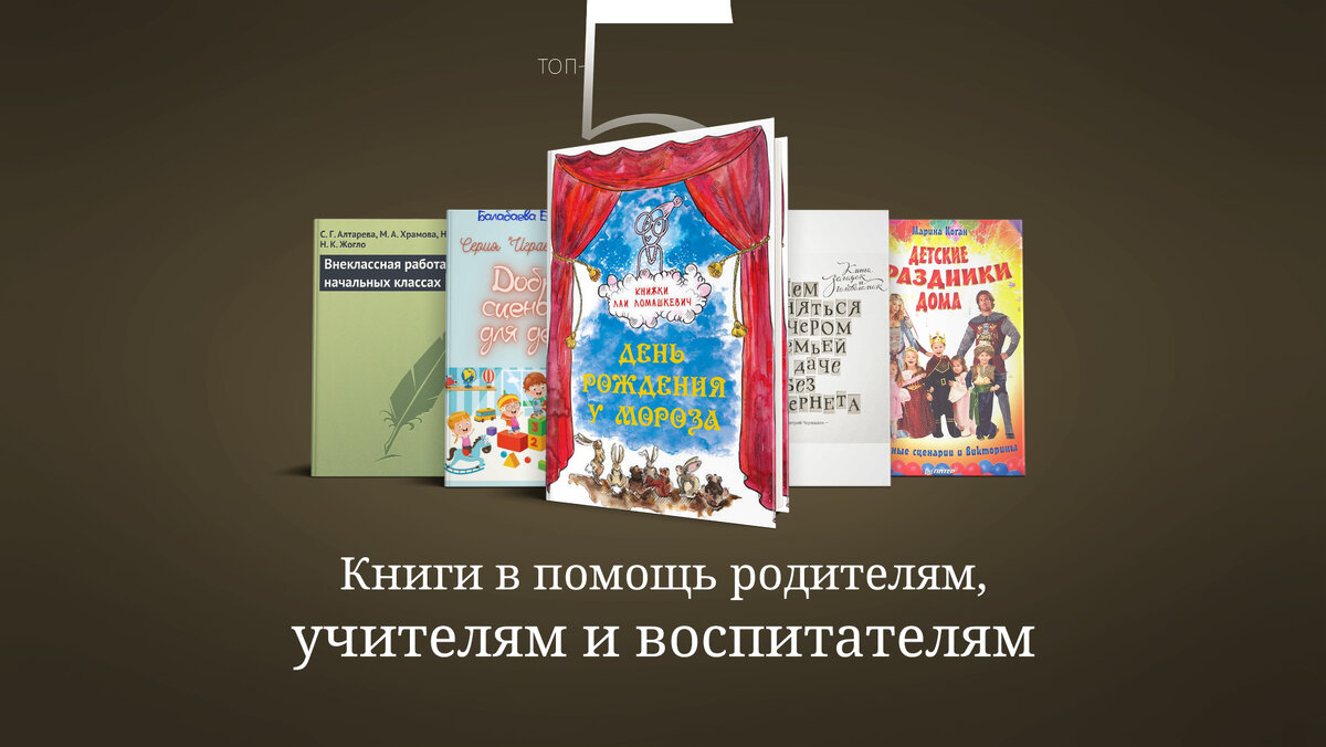 «День рождения у Мороза» Лая Ломашкевич Книга представляет собой готовый сценарий весёлой сказки, мудрой, но понятной для детей, и в то же время с тонким юмором для взрослых. Готовый сценарий для домашнего театра, наверняка, заинтересует и корпоративных затейников, воспитателей, учителей. «Чем заняться вечером с семьей на даче без интернета» Дмитрий Чернышев Этот сборник загадок, вопросов на эрудицию и логических задач – настоящая проверка того, насколько гибок ваш ум. Это прекрасная возможность расшевелить мозг, включить логику, смекалку, интуицию и наблюдательность. Они помогут развить нестандартное мышление, проверить эрудицию, с пользой провести время на отдыхе. «Внеклассная работа в начальных классах» Светлана Алтарева Данное пособие поможет правильно и интересно организовать проведение школьных праздников и других мероприятий, направленных на развитие театрального мастерства и сценических навыков у детей. Книга будет интересна не только преподавателям школьных учебных заведений,