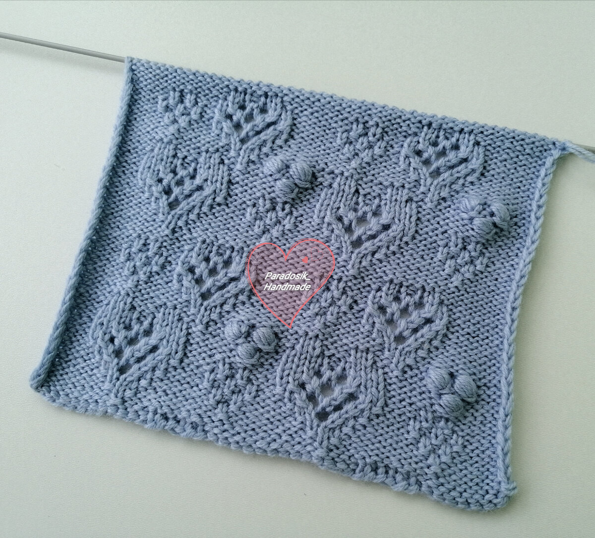 Ажурный квадрат недели: узор «Сердца» спицами