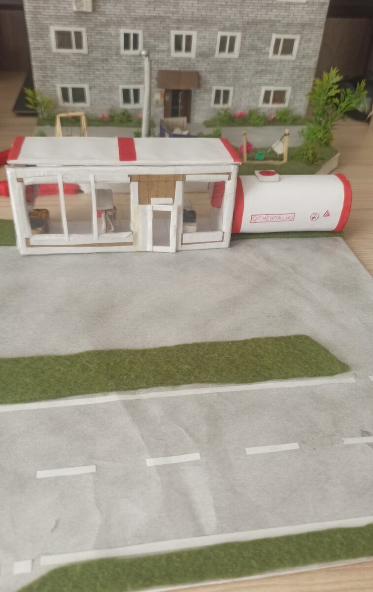 #диорама #миниатюры #азс #поделки своими руками #самоделка Идея сделать подобную миниатюру пришла в мою голову спонтанно. Делюсь с вами процессом и результатами работы. Материалы : 1.Корпус - картон (упаковочный) Преимущества: хорошо сгибается и режется, хорошо держится на обычном ПВА Недостатки: Расслаивается и сдавливается при неаккуратном обращении 2. Облицовка - цветная и офисная бумага. 3. Остекление - обложка для тетрадей и учебников. 4. Газон - обычный зелёный фетр. Хорошо клеится на "Титан", но если переборщить, то может намокнуть и поменять цвет. 5. Кусты и растительность - искусственные растения и декоративный мох. Покупал в хобби-гипермаркете "Леонардо". Качеством доволен. Единственный минус декоративного мха - это то, что он со временем выпускает жидкость, которая оставляет жёлтые следы на бумаге. Несколько часов работы и вот результат: Так же я не забыл про детали и внутреннюю отделку помещения На мой взгляд получилась очень уютная и оригинальная диорама.