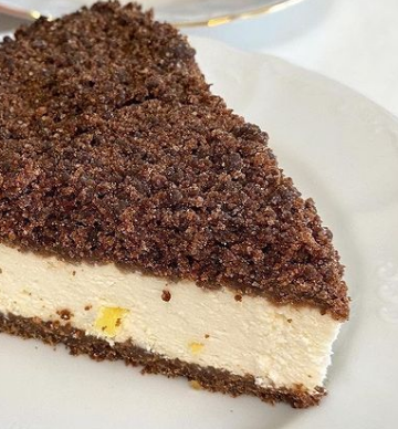 Сверху вливаем творожную массу разравниваем и добавляем опять крошки