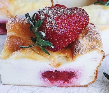 творог мягкий 400 гр; 2 яйца; мука рисовая 4-5 ст.л ванилин щипотка /сахарозаменитель клубника или другая ягода ⠀ Приготовление: