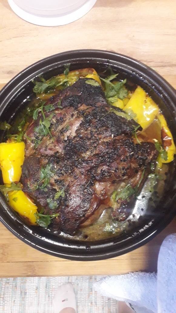 Если вам понравились мои рецепты оставляйте свои отзывы и сердечки мне будет очень приятно!🤗 Ингредиенты: Мясо говядины, Чеснок, Травы прованские, перец/чёрн, красный, базилик сухой, Кинза, Перец/болг., Гарнир на выбор!🤗 Способ приготовления: Берём кусок говядины, пусть будет вырезка или пласт говядины, начиняем его чесноком, и специями. Если у вас цельный кусок мяса, не страшно делайте разрезы и начиняйте в отверстия, а если пласт то выложите чеснок, специи и закрутите в рулет и перевяжите его. Он так лучше промаринуется. Желательно делать это за день, и оставляете в холодильнике. После, берёте блюдо, какое вам удобно, у меня глина, там лучше выпекается и мясо сочное и отделяются волокна как вы любите, уверена!😊Один лук нарежьте кольцами и положите на дно блюда, выкладываете мясо, я добавила перец в конце за мин 5 до готовности, по вашему усмотрению можно положить молодую картошку, она пропитается в соке от мяса, вкус будет волшебный! Ну и ставим при 200° на 1.5-2 часа и будет прос